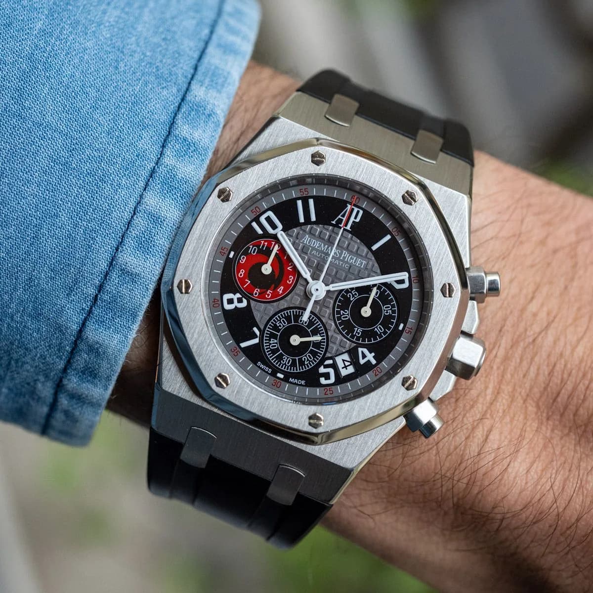 First variation of the famous Royal Oak "Kasparov" on a rubber strap, we appreciate this watch for its comfort when worn, its original dial design and its reasonable diameter of 39mm.