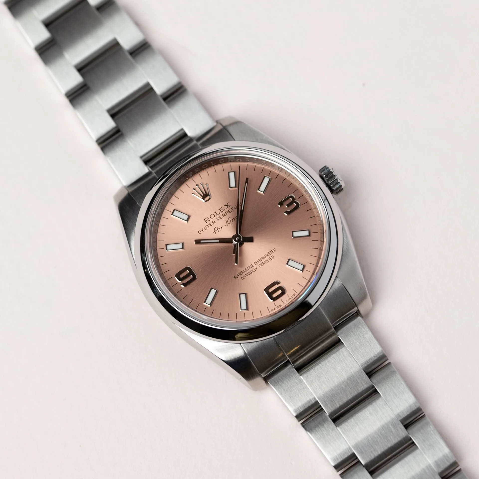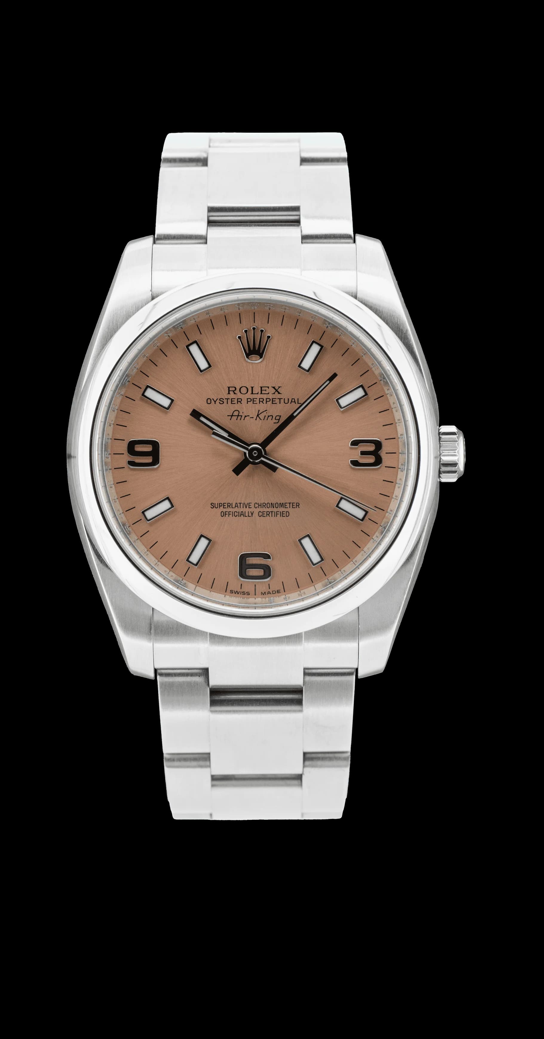 The aesthetics of the Air-King set them apart as symbols of a classic and universal style. Their dimensions and functions are timeless, firmly anchored in the pioneering spirit that has characterized Rolex since its origins. This reference with a reduced diameter of 34mm makes it a resolutely...