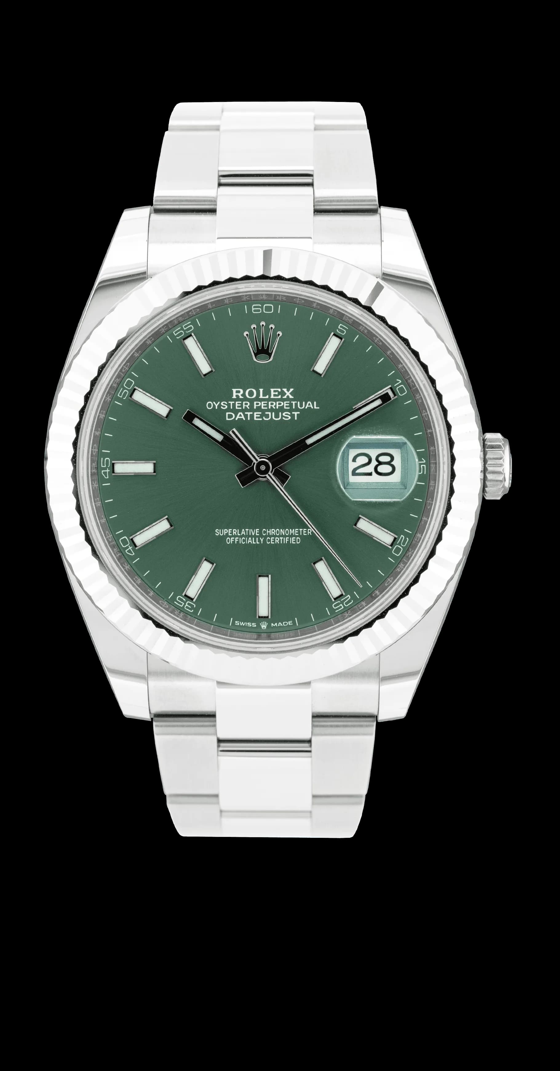 The latest version of the large Datejust, the Datejust 41 reference 126334, stands out for the beauty of its dial (here the brand new mint green version) and its fluted bezel which gives it a lot of elegance. A timeless model in a sporty-chic version. The Oyster bracelet, in its modern version, has...