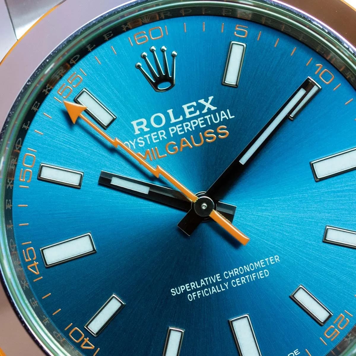 A watch full of character, charm and originality that stands out in particular thanks to its magnificent blue dial called "Z Blue" and its tinted sapphire crystal. Re-launched in 2007 in its current form, the Milgauss is available in 4 versions: white background, black background, black background...