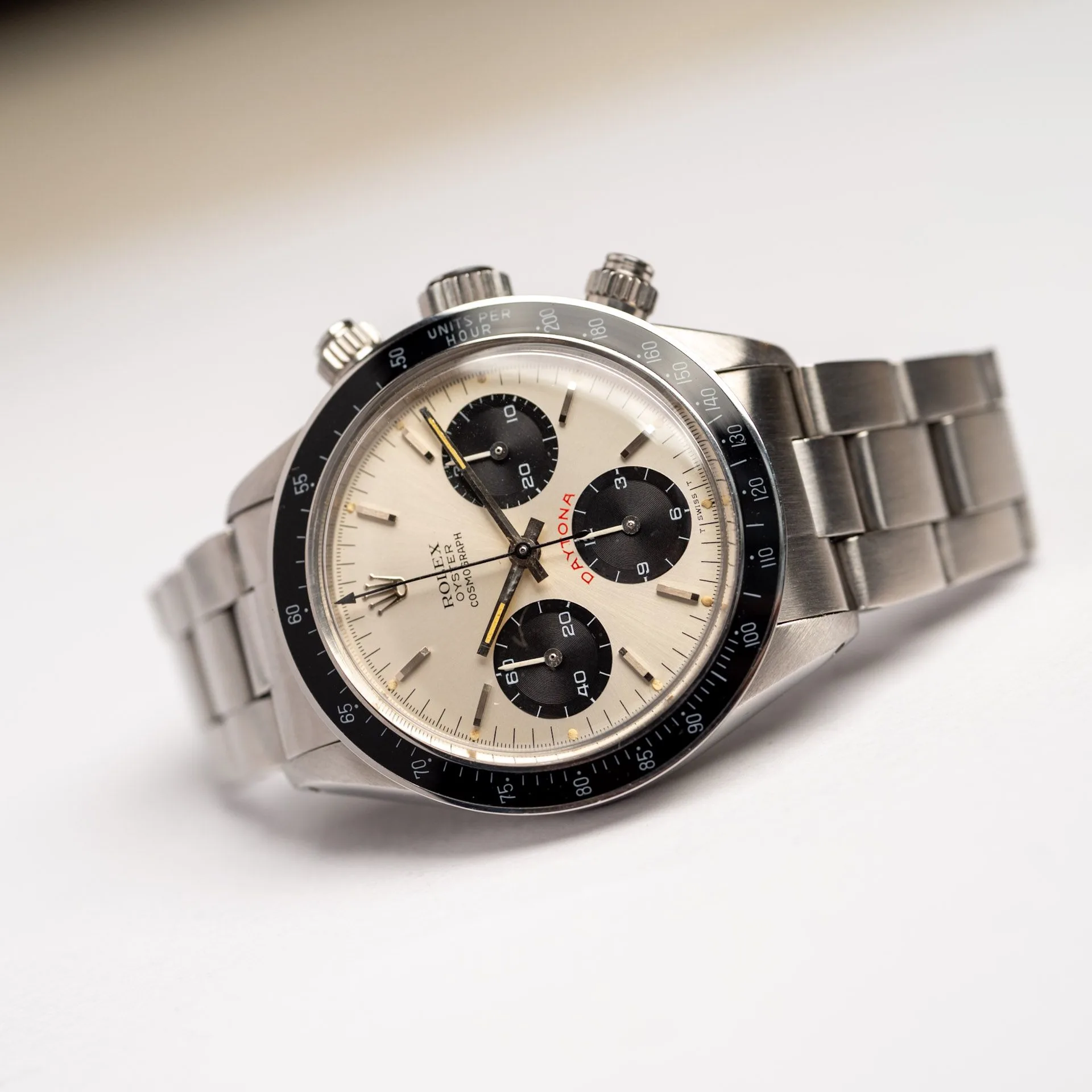This Daytona chronograph has the distinction of having known only one particularly careful owner. A perfect collector's item, it comes with its original box and papers.