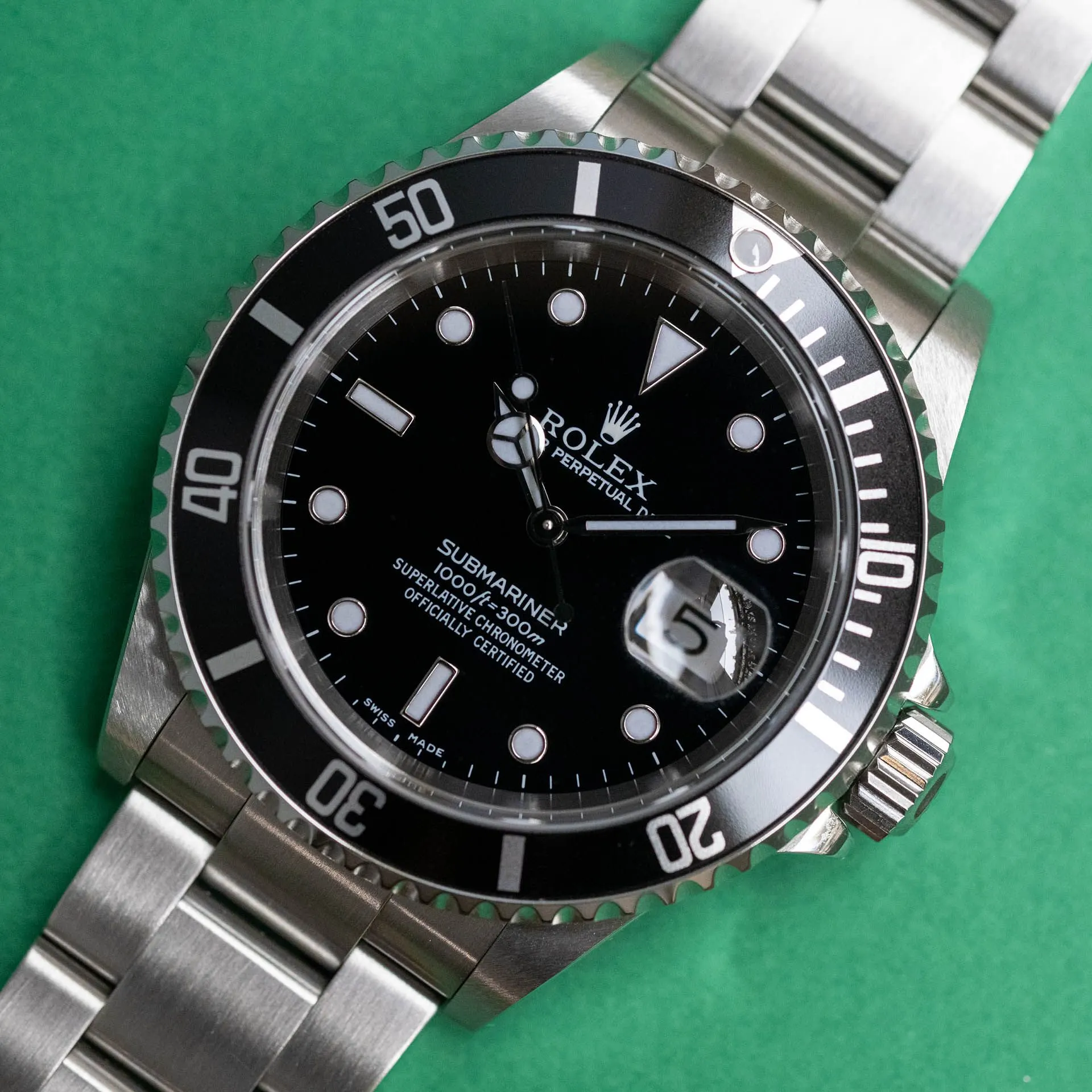 The mythical Rolex Submariner Date reference 16610 is an ultra-sturdy tool-watch that stands the test of time. This model with Luminova dial from the early 2000's is a future collector in an exceptional state of preservation and comes with its complete set.