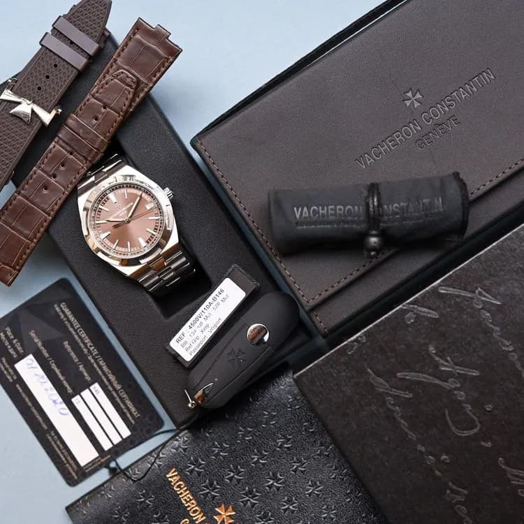 This reference 4500V is a rare model, a very limited production variation (lasting less than a year) of the 3rd series of the Overseas collection by Vacheron Constantin. A sublime brown sunray dial, very versatile for a watch that can be customized according to your desires thanks to the...