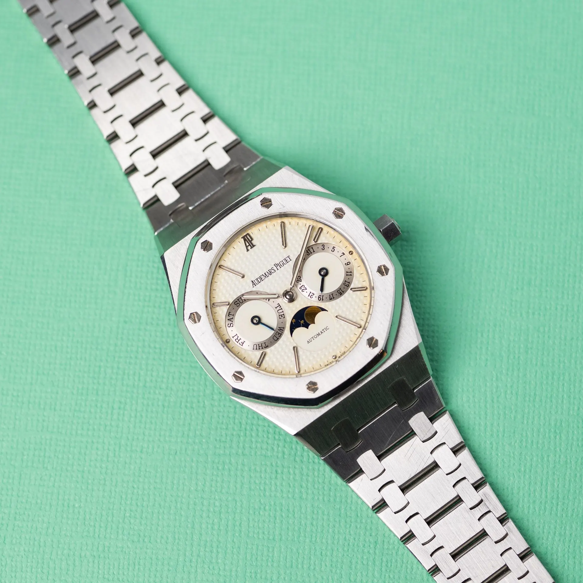 Référence confidentielle dans l'histoire de la Royal Oak, la Day-Date référence 25594 - descendante directe de la 5572 "The Owl" - fait partie de nos déclinaisons favorites pour ses nombreuses complications tout en conservant un boitier extrêmement fin et un cadran parfaitement équilibré... Une...