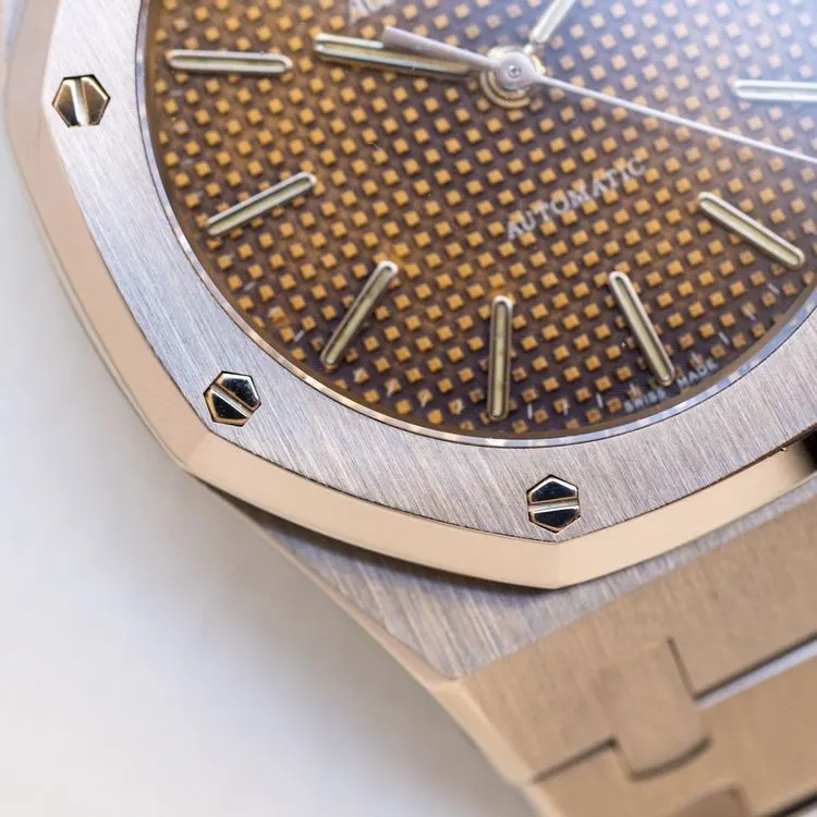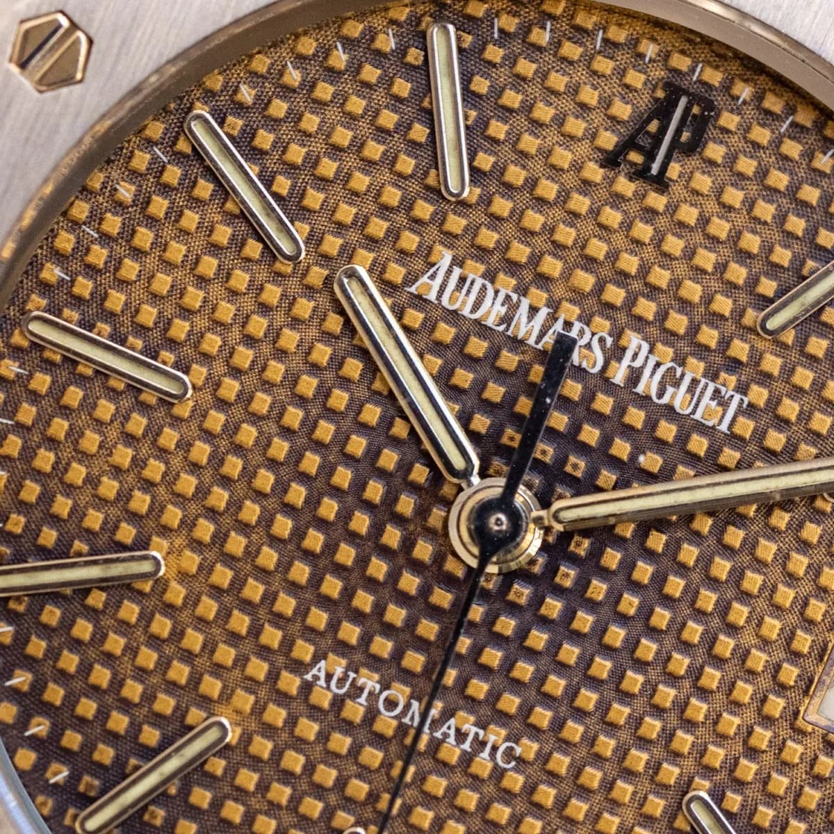 La 14790ST fait partie de nos références de Royal Oak favorites, nous l'apprécions pour son diamètre réduit de 36mm alliant chic et discrétion. L'exemplaire présenté possède un cadran Mark 2 avec une superbe patine "tropical" lui conférant un charme inégalé. Une pièce collector sans aucune doute.