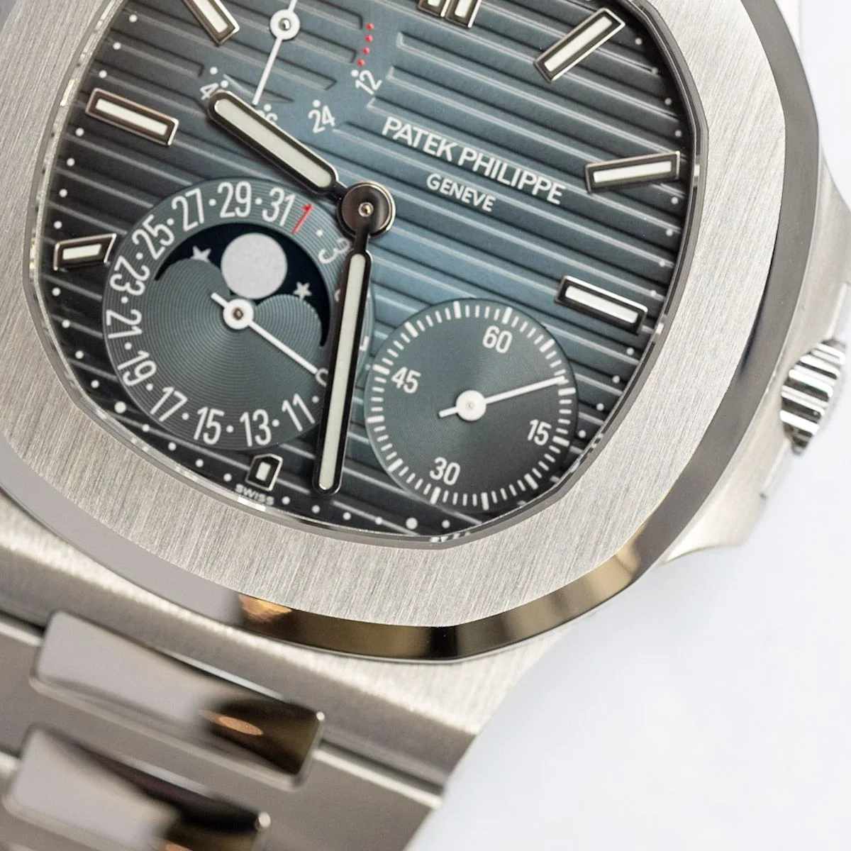 The second reference in the Nautilus collection introduced with the moonphase complication after ref. 3712, the 5712 was an undisputed success from the start. The slimness of its case housing an incredible micro rotor in 22K gold contributes greatly to the desirability of this watch...
