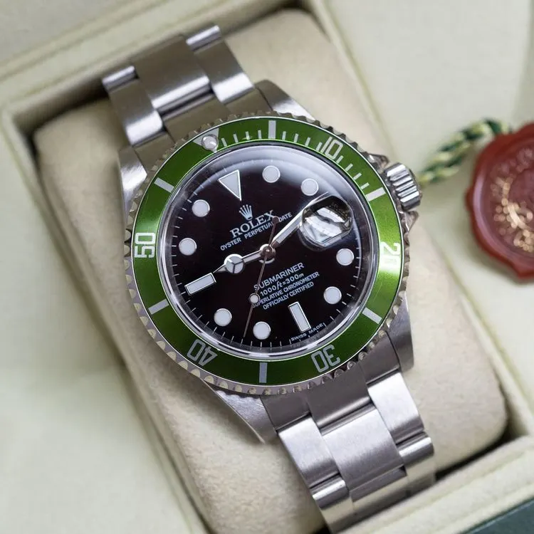 La référence 16610LV fait partie de nos Submariner favorites pour son boitier fin ainsi que pour la résistance de son verre saphir garantissant une parfaite étanchéité. Un collector créé pour célébrer le 50ème anniversaire du modèle Submariner. Nous avons un véritable coup de coeur pour ce modèle...